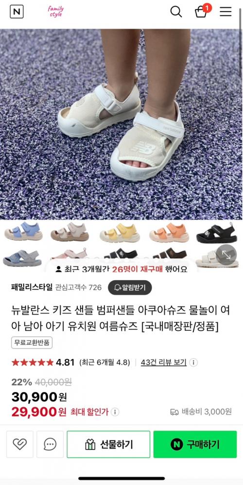 휴가철 물놀이 많이가시는데 아기들 아쿠아슈즈 신겨놓으면 이쁘고 덜미끄러울거같네요