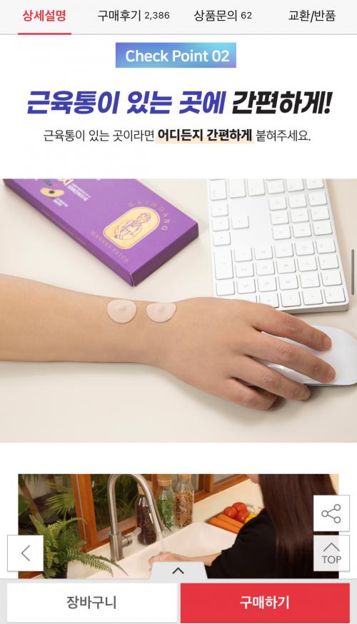 근육통 있는 곳에 간편하게 부착이 가능하고