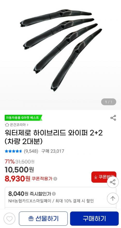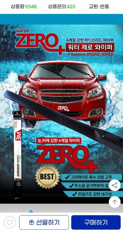 [G마켓] 워터제로 하이브리드 와이퍼 2+2 차량 2대분 (8,930원/무배) > 국내핫딜