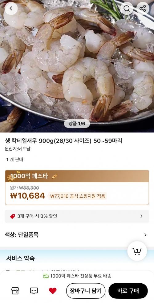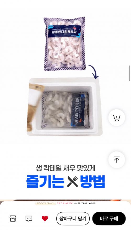 생칵테일새우 특가 하고있네요 900g 50~59마리 들어있고 10684원 나와요