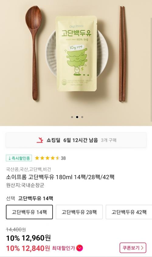 [11번가]소이프롬 고단백두유 180ml 14팩(12,960원/무배) > 국내핫딜