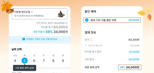쿠폰번호에 '현대기아가을쿠폰' 적으면 엔진오일 3만원 쿠폰 받을 수 있습니다.