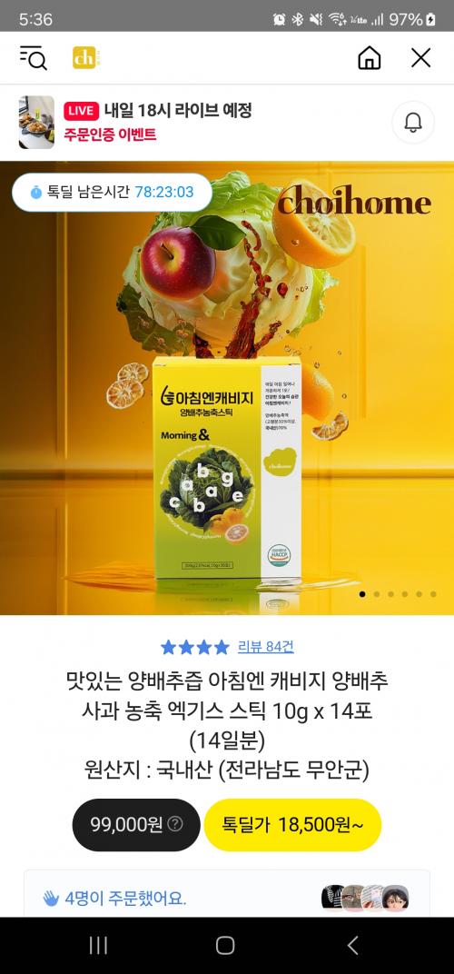 [톡딜] 아침엔 캐비지 양배추 사과 농축 엑기스 스틱10gx19포(19일분) 15,750원 무배 > 국내핫딜