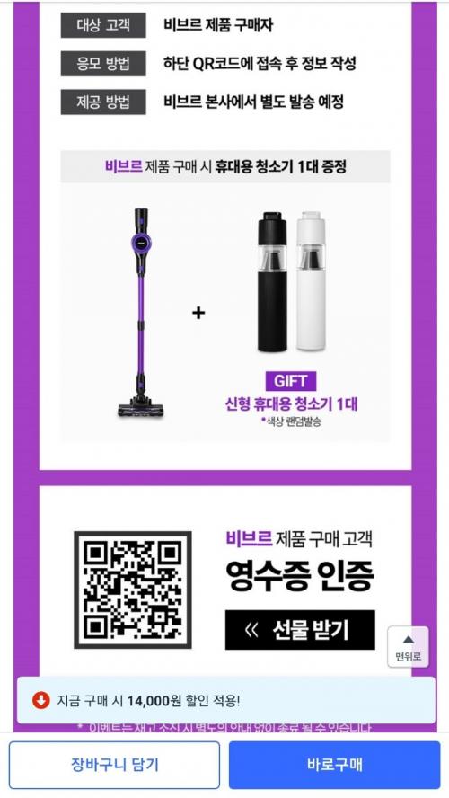 영수증리뷰 참여시 휴대용청소기 1대 증정도있는데