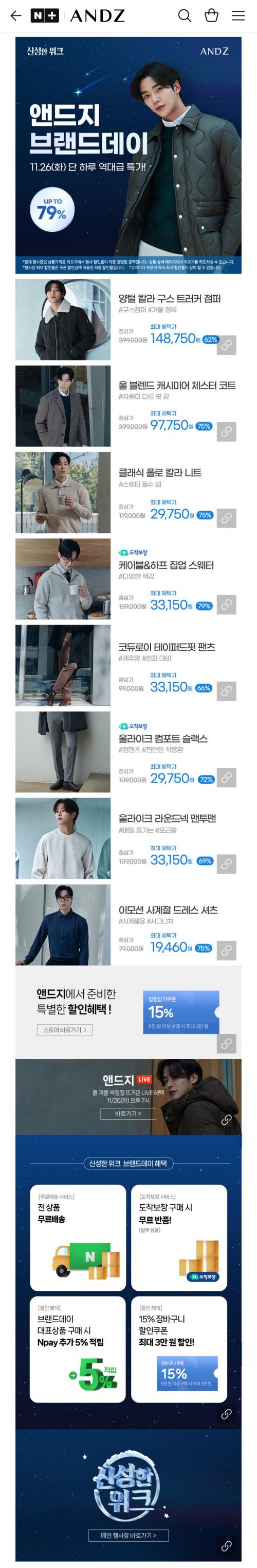 [네이버] 앤드지 브랜드데이 하루 특가 최대 79% 할인 (다양/무배) > 국내핫딜