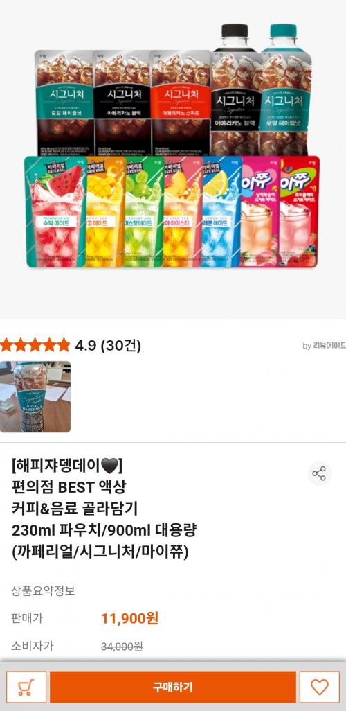 [쟈뎅샵] 까페리얼/시그니처 편의점 커피&음료 골라담기 (11,900원/3.500원) > 국내핫딜