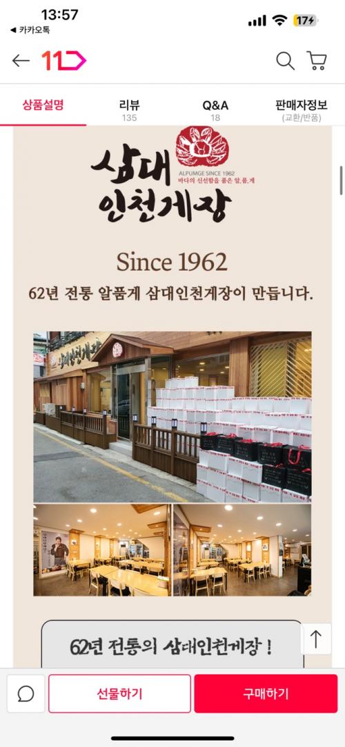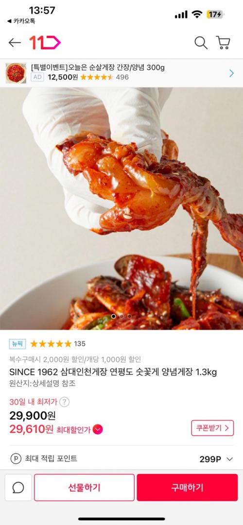 삼대인천게장 연평도 숫꽃게 양념게장 1.3kg
