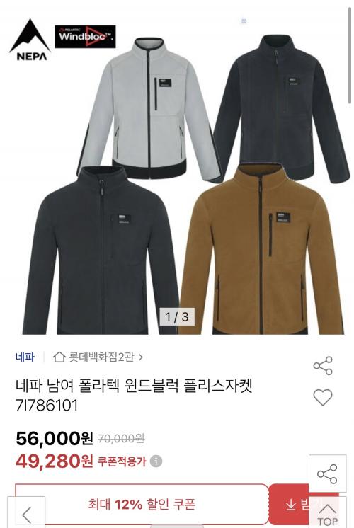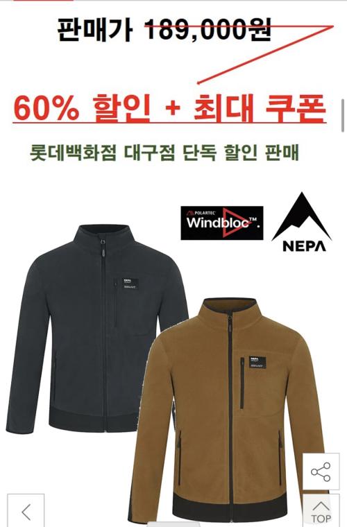 [옥션] 네파 남여 폴라텍 윈드블럭 블리스자켓 (49,280원/무배) > 국내핫딜