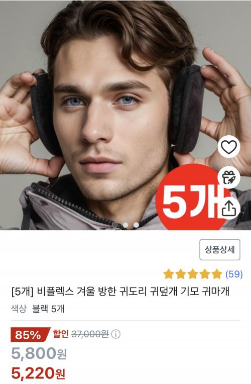 [쿠팡] 겨울 방한귀도리 귀마개 5개 (5,200원/무료)