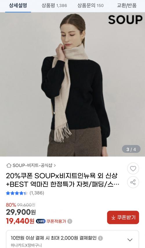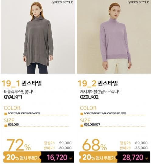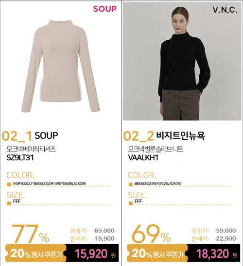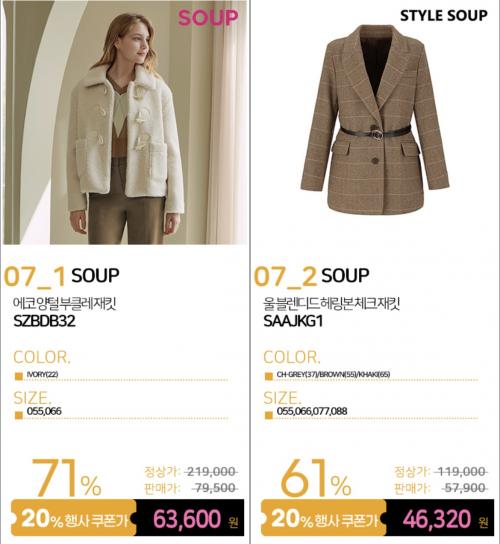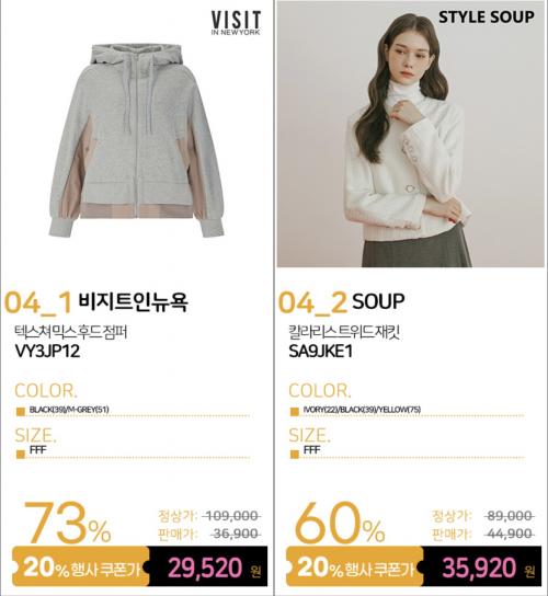 SOUP / 비지트인뉴욕 / 퀸스타일 등 여성으류 20% 특가입니다