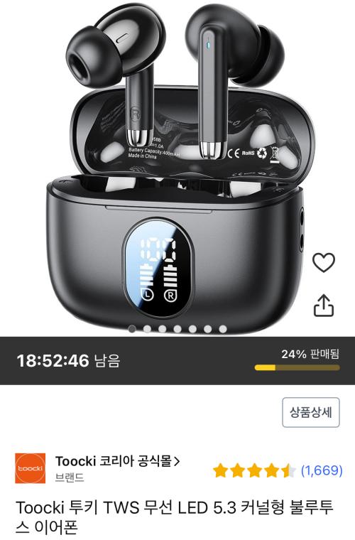 [쿠팡] Toocki TWS 커널형 블루투스 이어폰 (11,900원/무료) > 국내핫딜