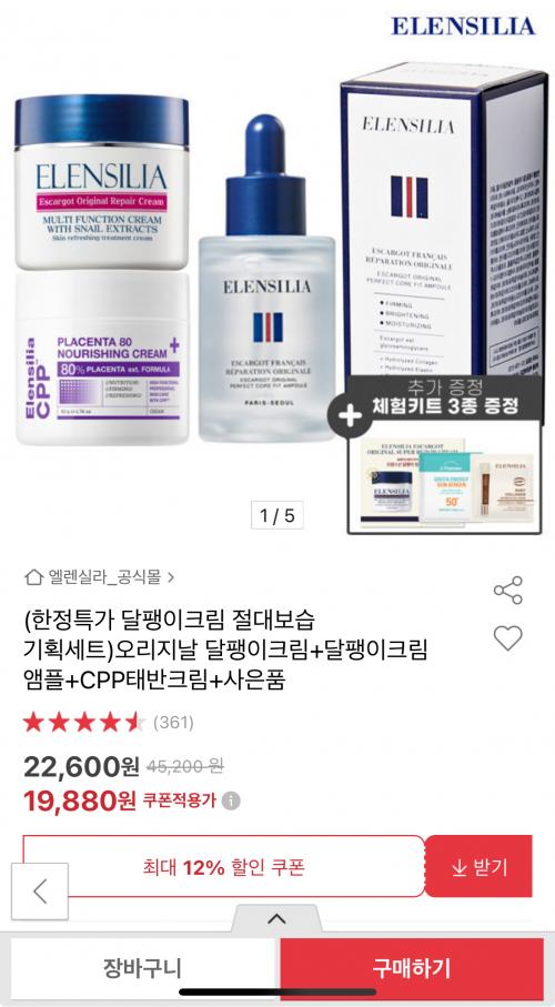 오리지날 달팽이크림+달팽이크림 앰플+CPP태반크림+사은품 기획세트가 12% 쿠폰쓰면 19,880원