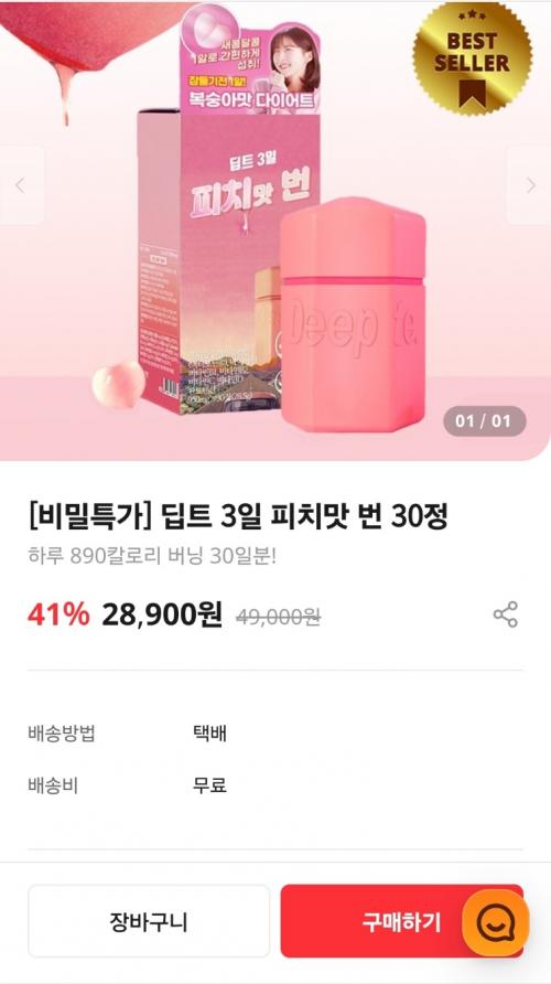 [누누마켓] 다이어트보조제 딥트 피치맛번 30정 (28,900원 / 무료배송) > 국내핫딜