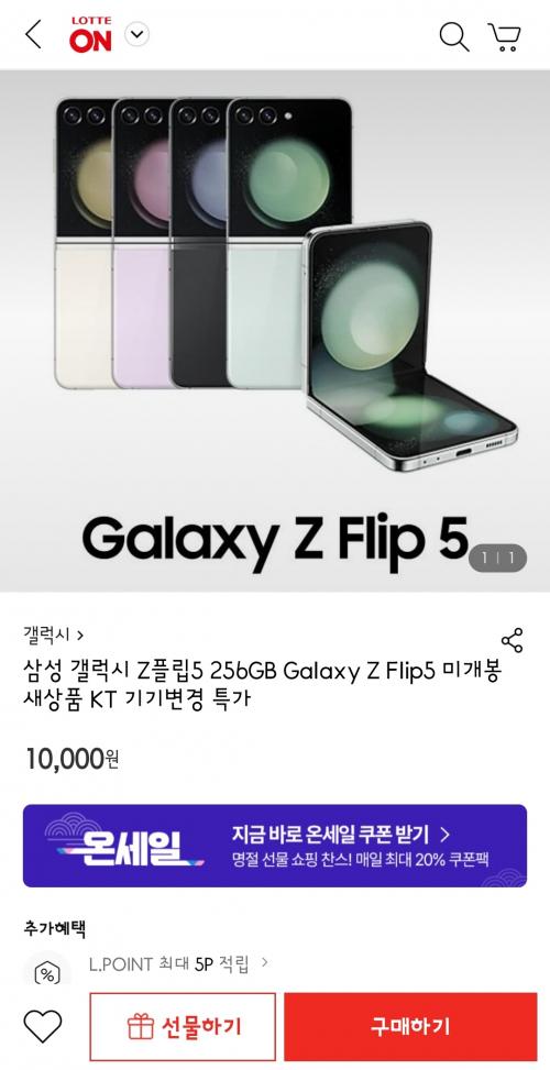 [롯데온] 삼성 갤럭시 Z플립5 256GB Galaxy Z Flip5 (10,000원/무료배송) > 국내핫딜