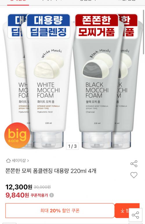 [지마켓] 모찌 폼클렌징 220ml 4개 (9,840원/무료) > 국내핫딜