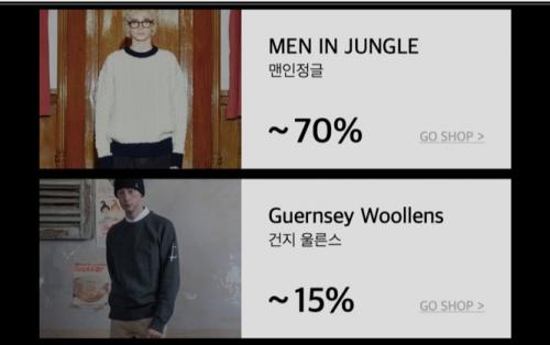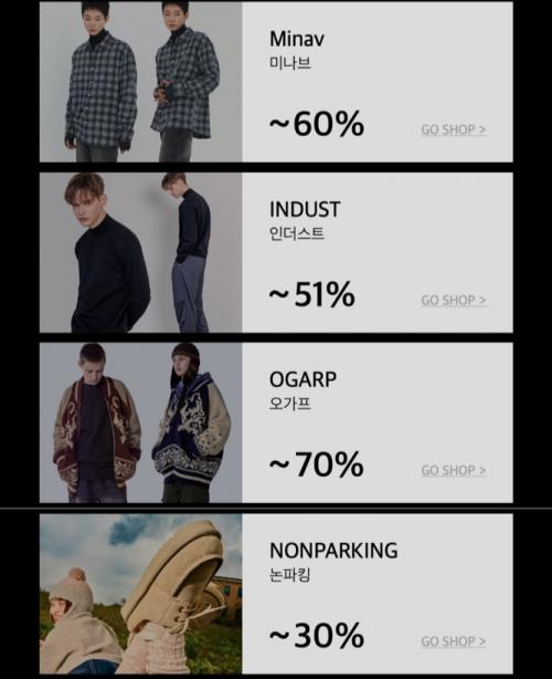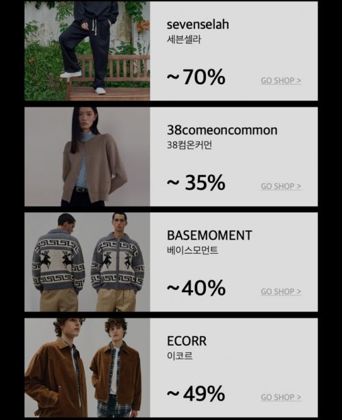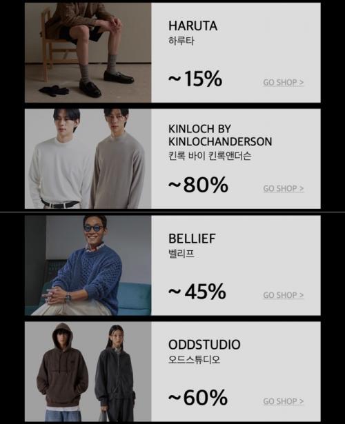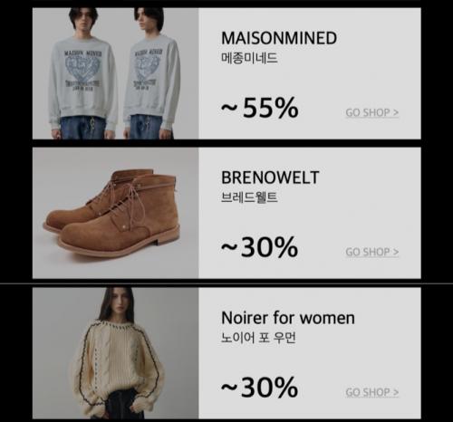 2.3만원대 스웻셔츠부터 아우터,상의,하의,신발,악세사리 카테고리별로 할인전 크게 진행 되고 있어요