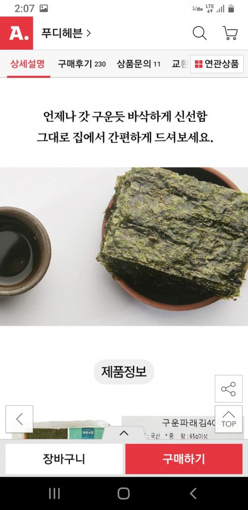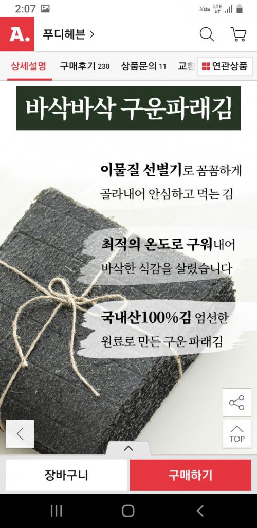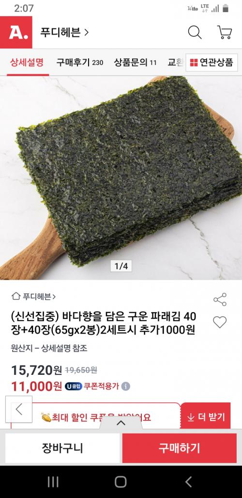 [옥션] 바다향을 담은 구운 파래김 40장+40장 (11000원/무배) > 국내핫딜