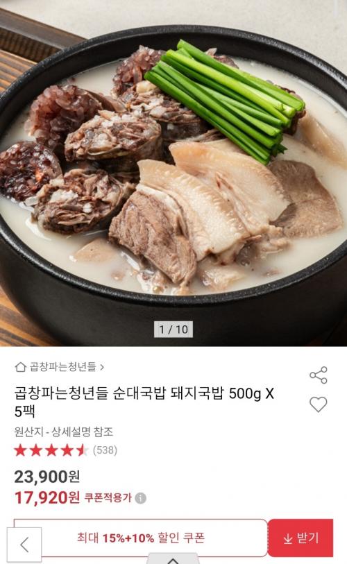 [옥션]곱창파는청년들 순대국밥 돼지국밥 500g x5팩(17,920원/무배) > 국내핫딜