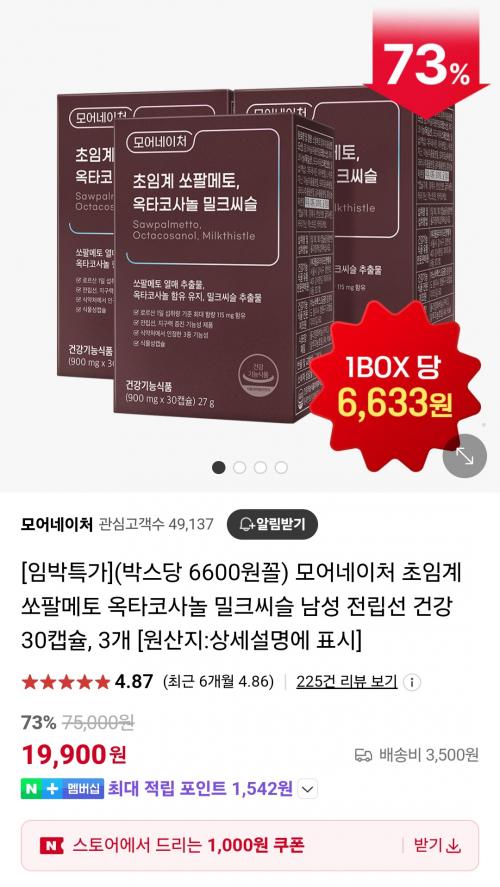 [네이버] 초임계 쏘팔메토 옥타코사놀 밀크씨슬 3개월분 (19,900원/3,500원) > 국내핫딜