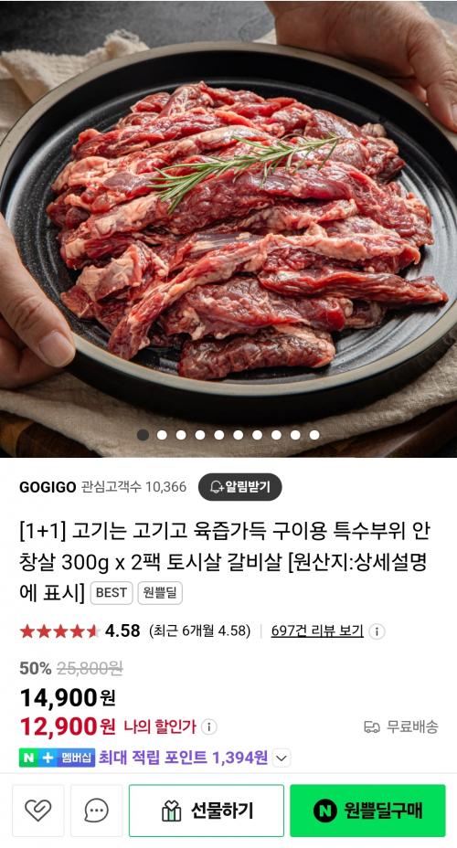 [네이버] 고기고 소안창살 600g (14,900원/무료) > 국내핫딜