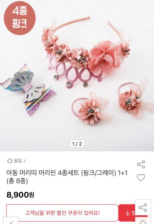 머리띠랑 끈2개랑 핀까지 있는 세트고