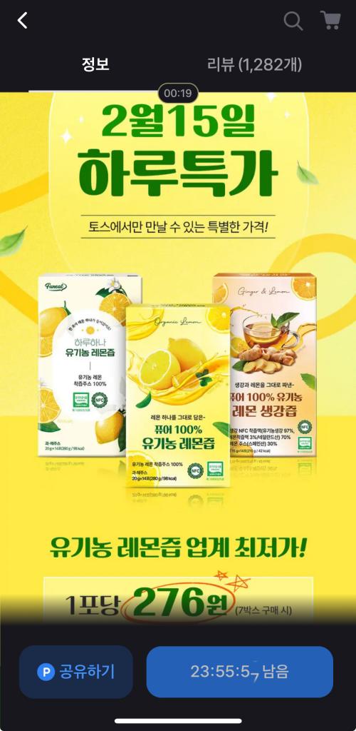 [토스쇼핑] 유기농 레몬즙 2박스 28포(9500원) > 국내핫딜