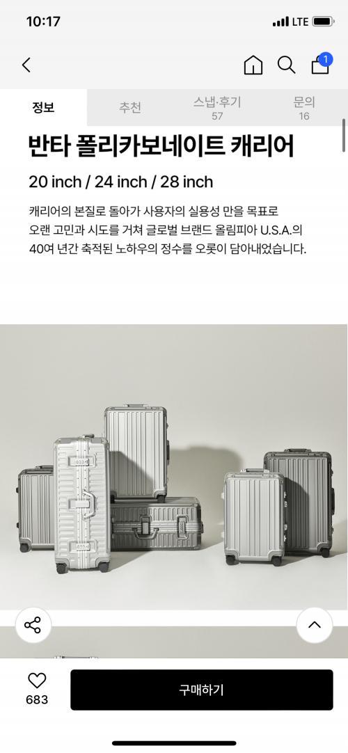 여행 계획 있는 분들 올림피아 반타 폴리카보네이트 캐리어 할인해요
