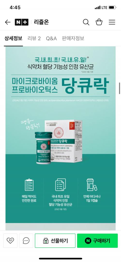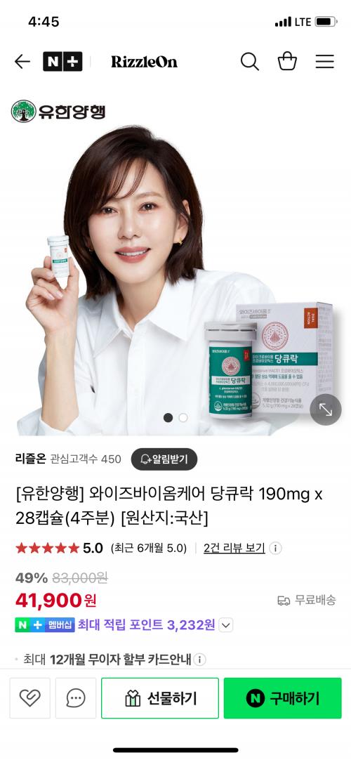 [네이버]유한양행 와이즈바이옴케어 당큐락 190mg x 28캡슐(4주분) (41900원/무배) > 국내핫딜