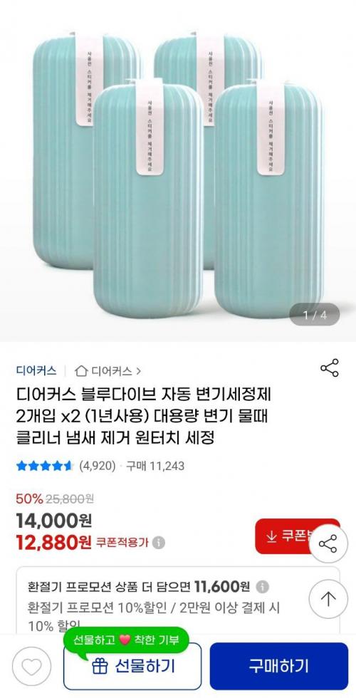 원터치로 변기와 수조내부까지 냄새와 물때 제거되서