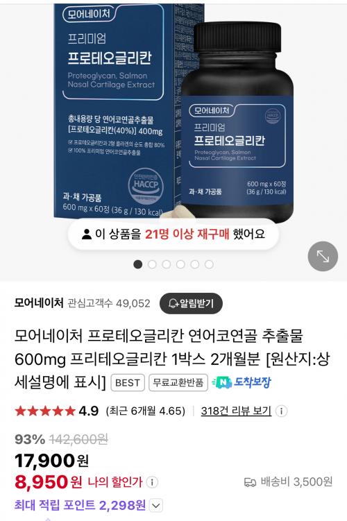 프로테오글리칸이 400mg 함유되어 있고
