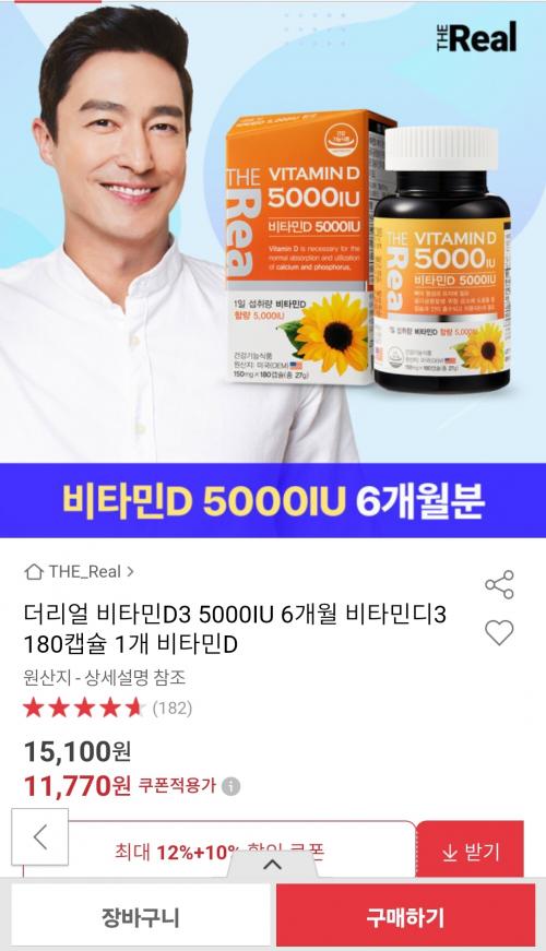 [옥션] 더리얼 비타민D 5000iu 6개월분(11,770원/무료) > 국내핫딜