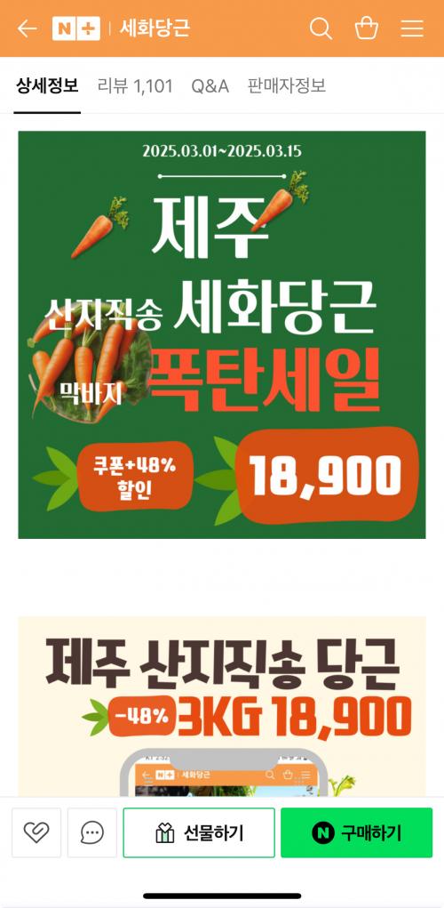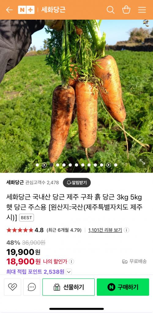 [네이버] 제주 구좌 세화 흙 당근 3kg (18,900원/무료) > 국내핫딜