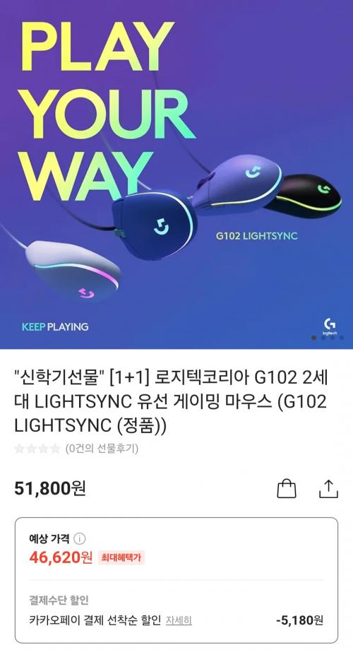 [카카오] 로지텍 G102 2세대 1+1 (46,620원/무배) > 국내핫딜