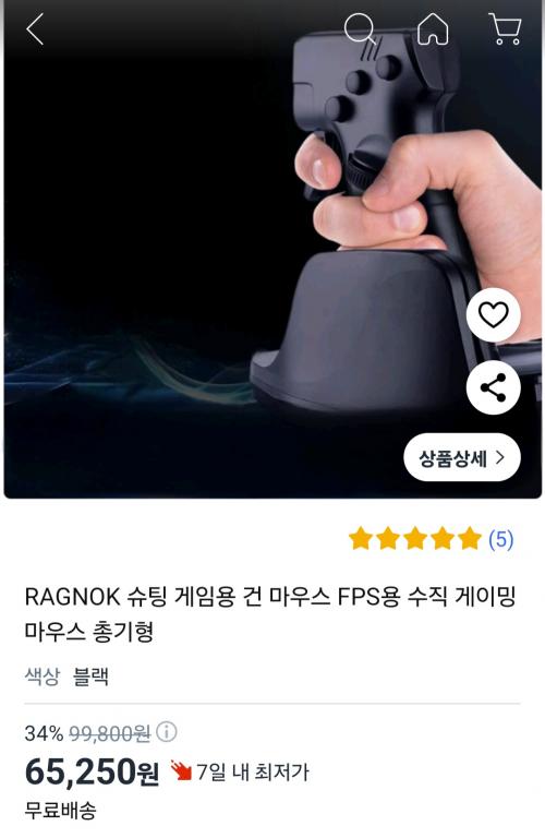 총기형으로 되어있어서 실제 무기 들고있는 기분이기도해서 관련 게임하시는분들이 사용하기에는 좋습니다.