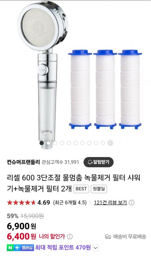 리셀600 3단조절 물멈춤 녹물제거 필터샤워기+녹물제거필터 2개(6,900원/무배) > 국내핫딜