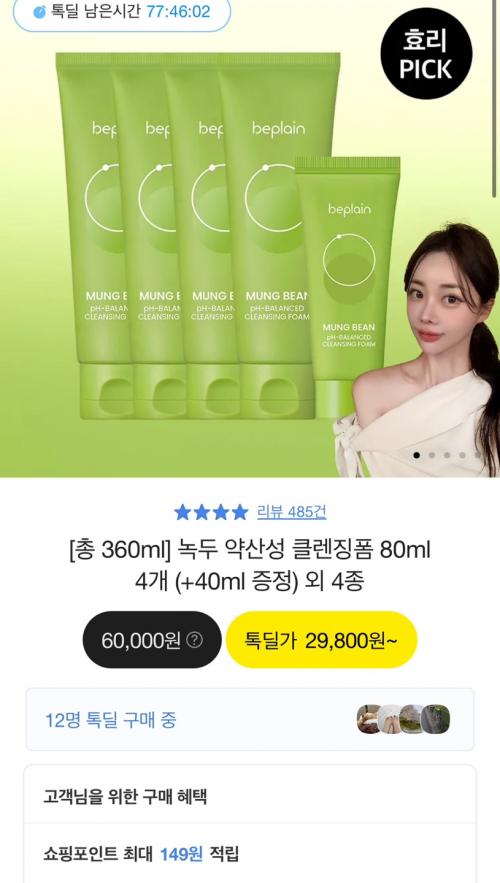 총 360ML 톡딜에서 행사 크게하네요 4개에 29,800원 인데