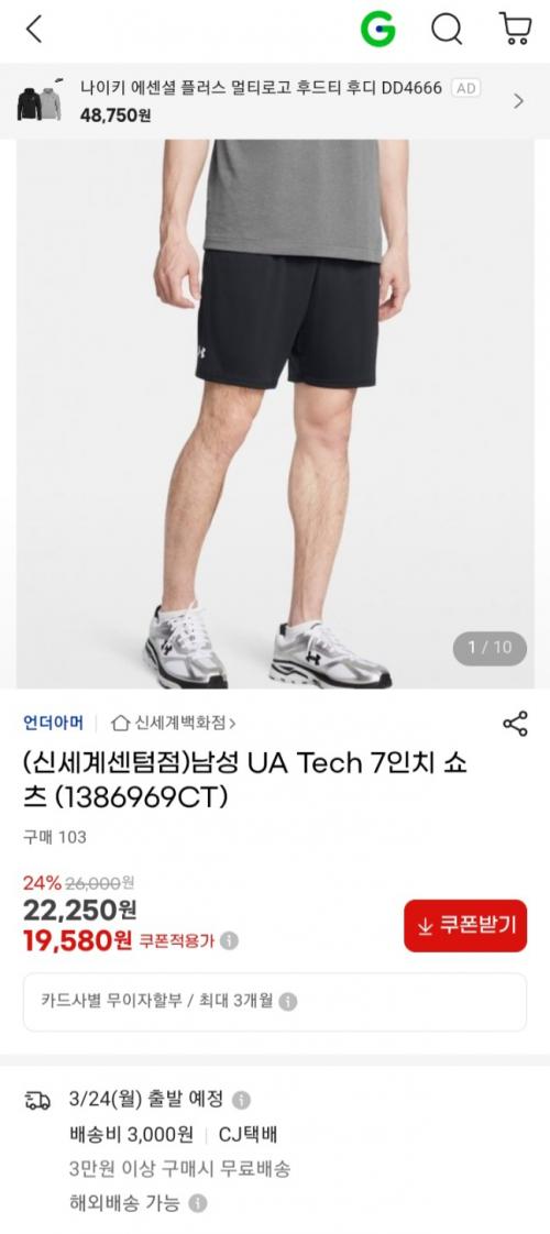 [지마켓]언더아머 UA TECH 7인치 쇼츠 (19,580원/ 3000원) > 국내핫딜
