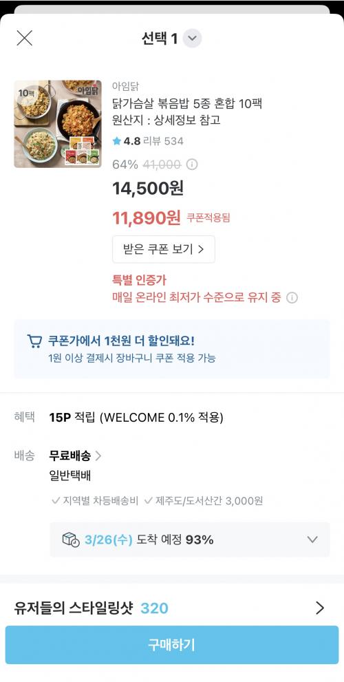[오늘의집]닭가슴살 볶음밥 10팩 외 닭가슴살/간편식 BEST 모음전 (11,890원/무료) > 국내핫딜