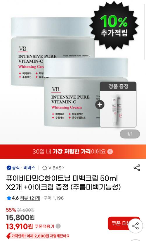 비타민c 함유된 화이트닝 크림 50ml 2개에