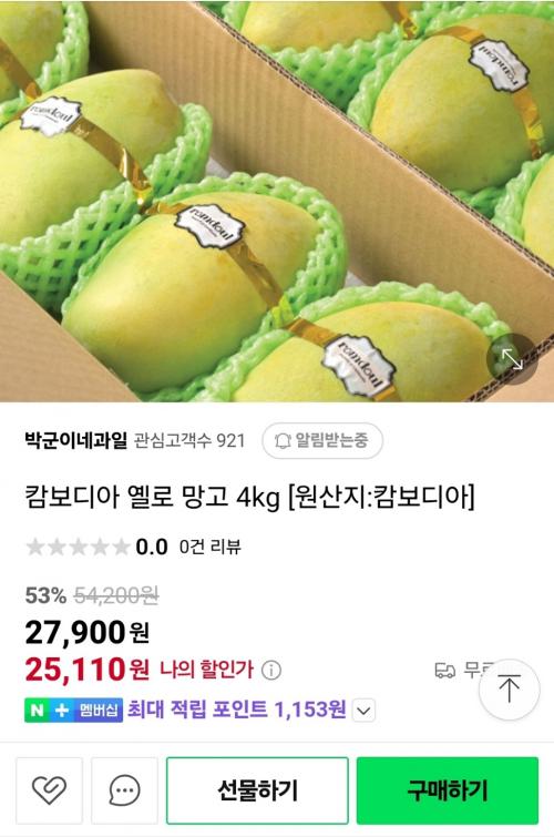 [네이버] 옐로망고 4kg (25,110원 /무료배송) > 국내핫딜
