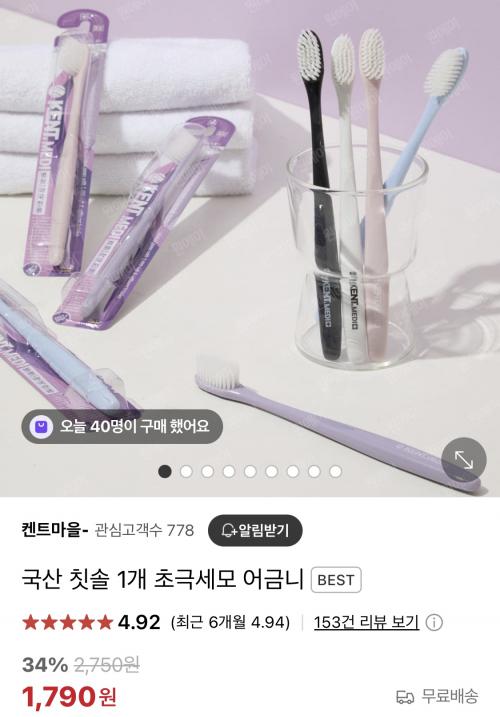 [네이버] 국산 켄트 초극세모 칫솔 1개 (1,790원/무배) > 국내핫딜