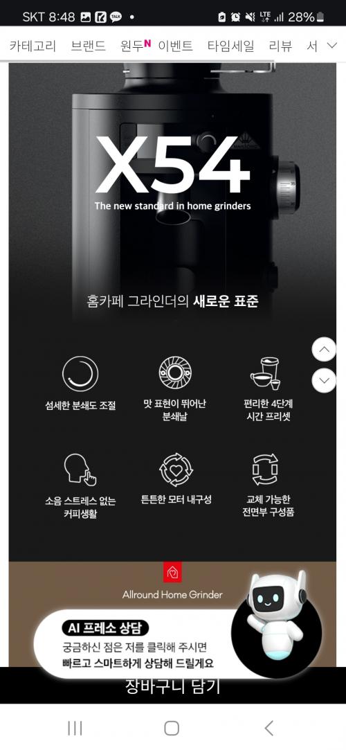 신형 가격 봤던 것 중에선 가장 저렴한 듯 한데 그라인더 필요하신 분들은 쿠폰 받아서 구매하면 괜찮을 것 같습니다~