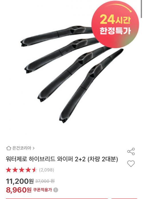 [옥션] 워터제로 하이브리드 와이퍼2+2 (8,960원/무료) > 국내핫딜