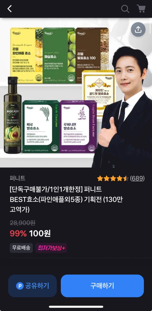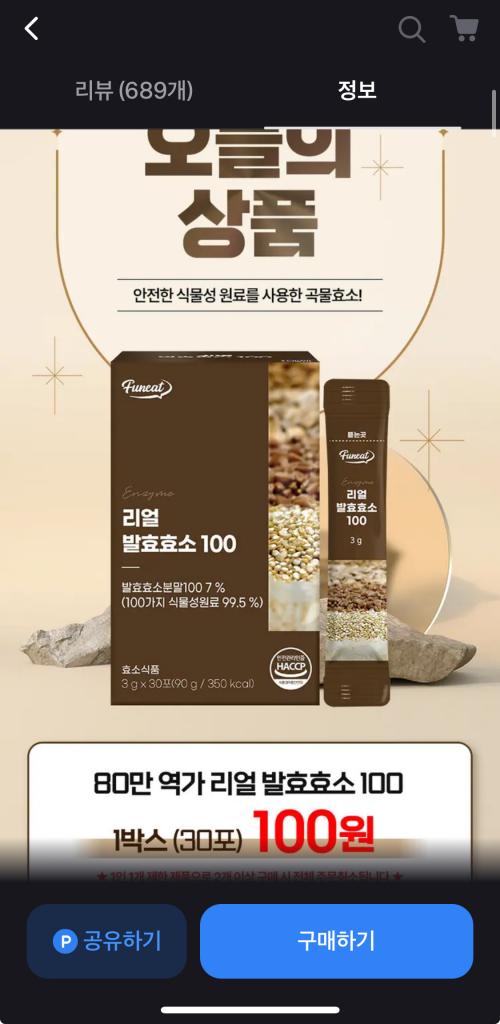 [토스쇼핑] 퍼니트 베스트 효소 기획전! 발효곡물효소 정품1박스 (100원/무배) > 국내핫딜