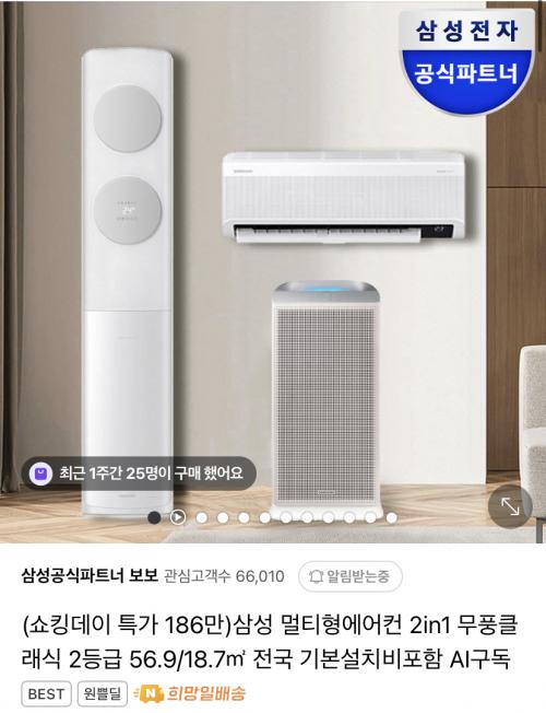 삼성전자 무풍 비스포크 에어컨 스탠드형(거실용)+벽걸이형(다른방용) + 50만원대 ax060cg500gbd 공기청정기 증정있습니다