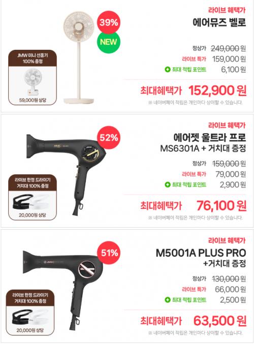 네이버 쇼핑라이브에서 JMW 써큘레이터 첫 런칭