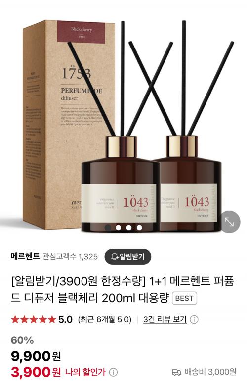 대용량 디퓨저 1+1 구성인데 쿠폰 적용하면 3,900원까지 떨어져요!