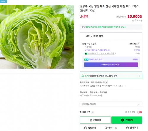 [네이버] 국산 양상추 4.5kg (15,900원 /무료) > 국내핫딜