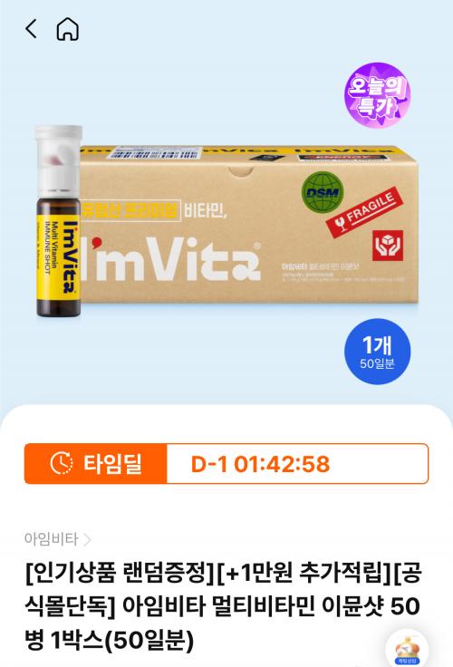 자사몰에서 아임비타 이뮨샷 50병 구성이 현재 쿠폰 적용 시