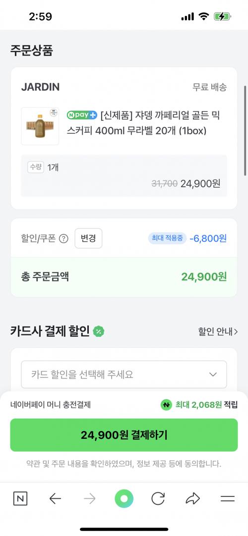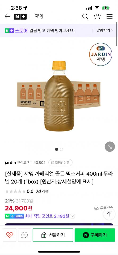 [네이버] 쟈뎅 까페리얼 골든 믹스커피 400ml 무라벨 20개 (24,900원/무료)